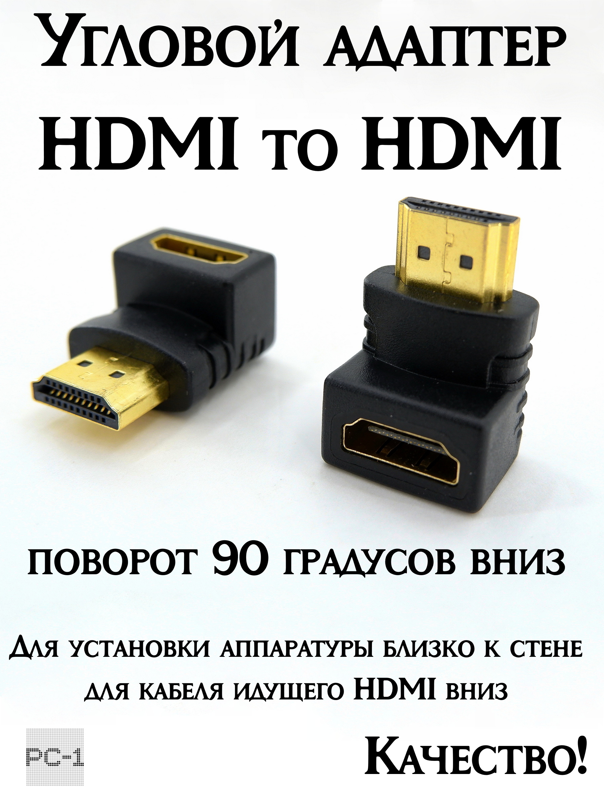 Угловой адаптер Down HDMI to HDMI угловой поворот 90 градусов вниз переходник штекер-гнездо. Контакты вниз HDMI A вилка — HDMI A розетка, избавляет от повреждений техники и кабелей установленных в плотную к стене. Нужен для установки аппаратуры близко к стене и для кабеля идущего HDMI вниз.