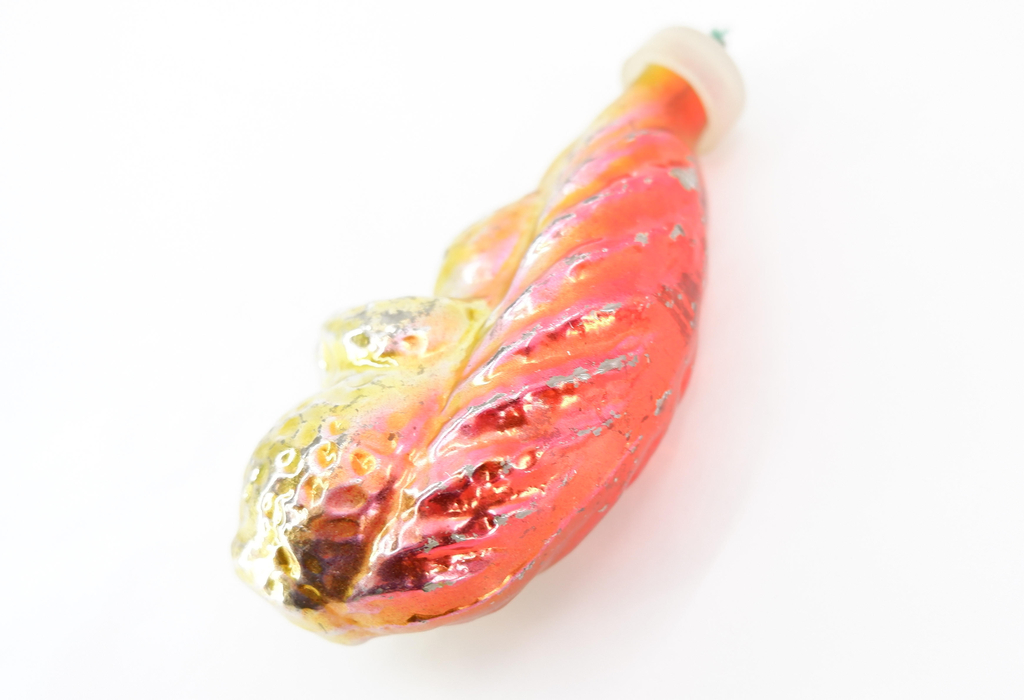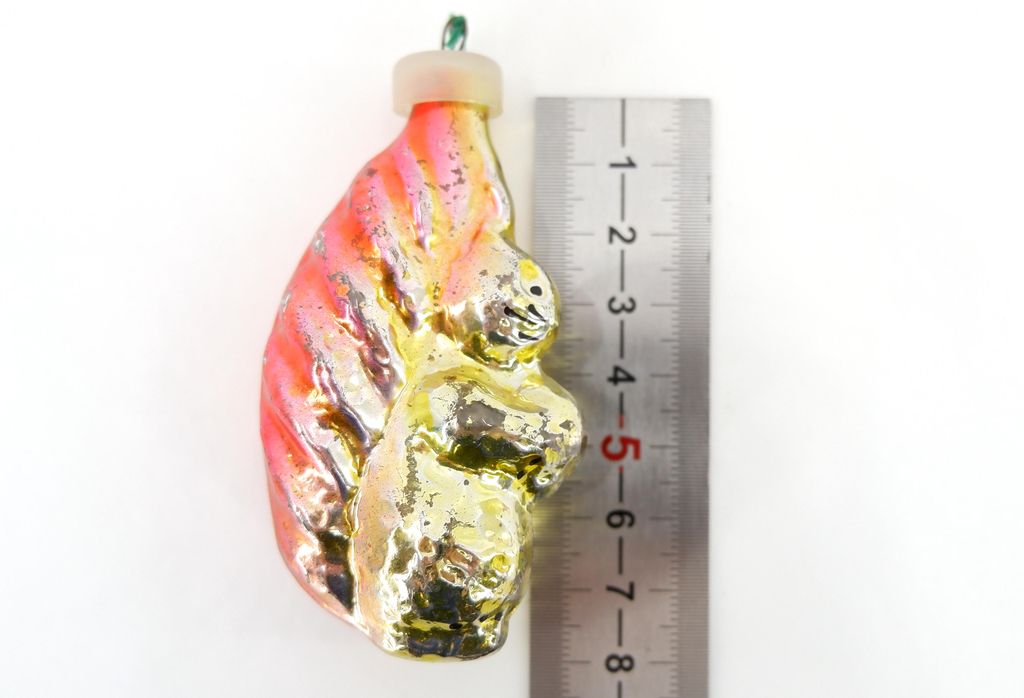 Советская елочная игрушка Белочка с орешком, стекло, цвет оранжево-красный