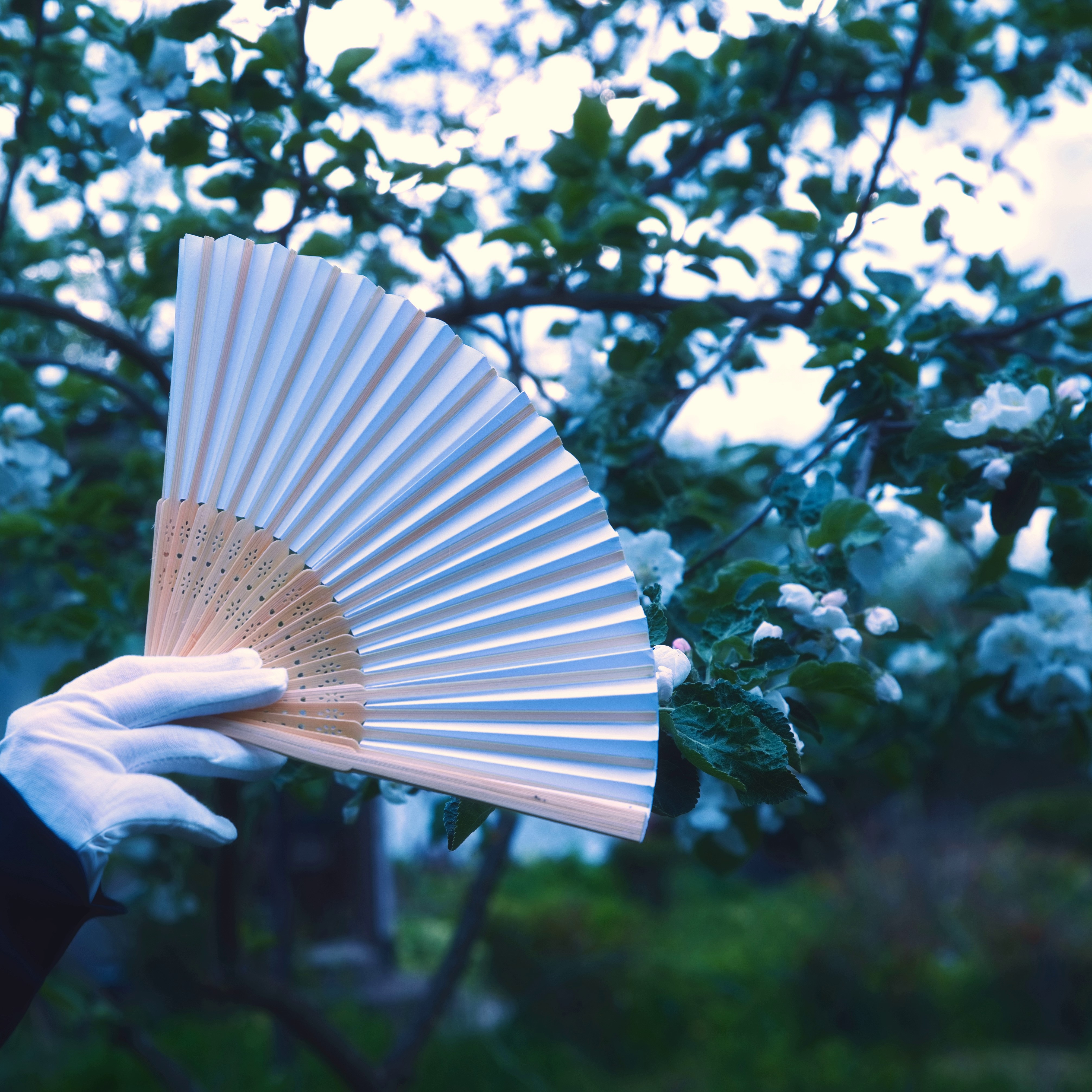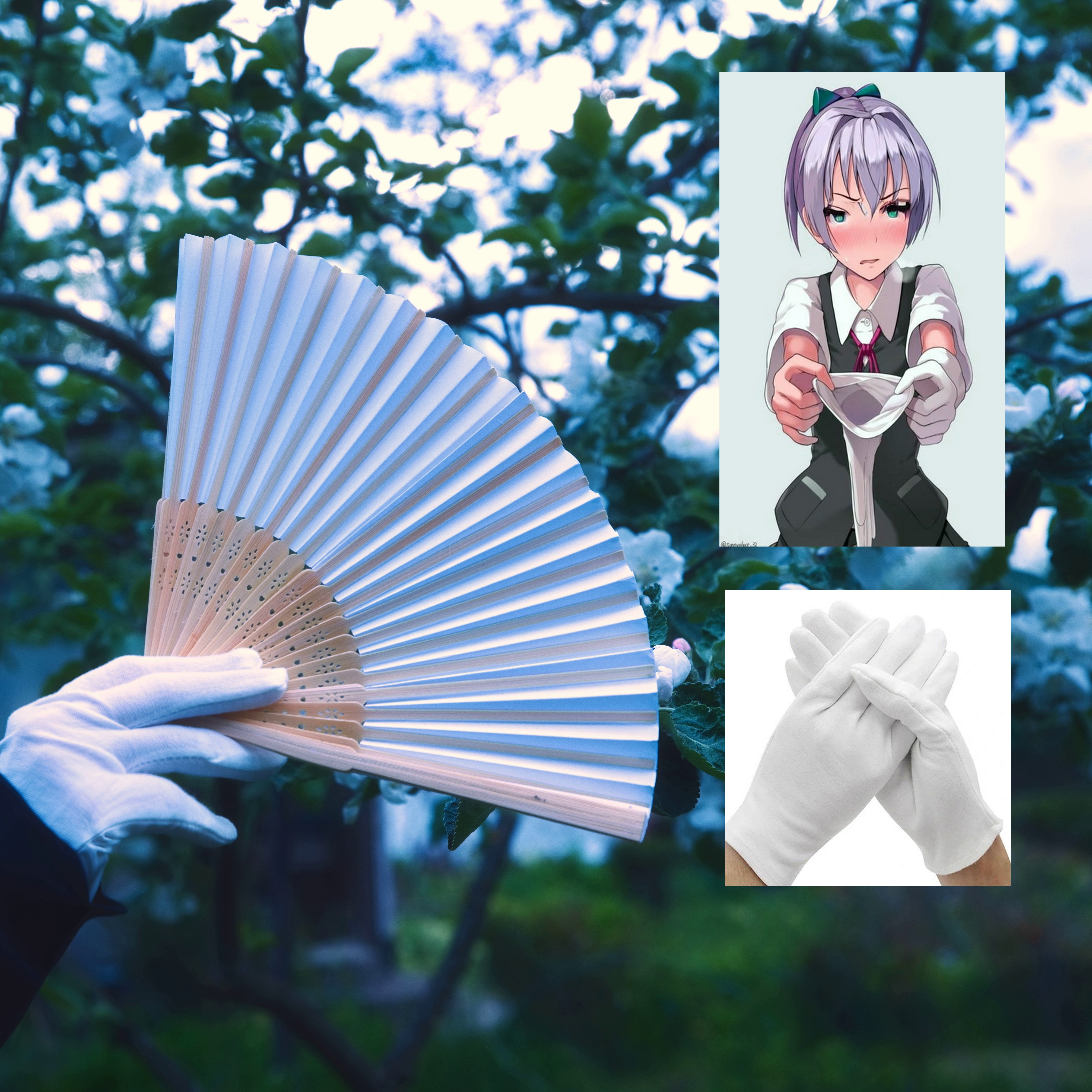 Веер ручной бамбуковый 21см. + Белые перчатки из хлопка / В Японском аниме стиле