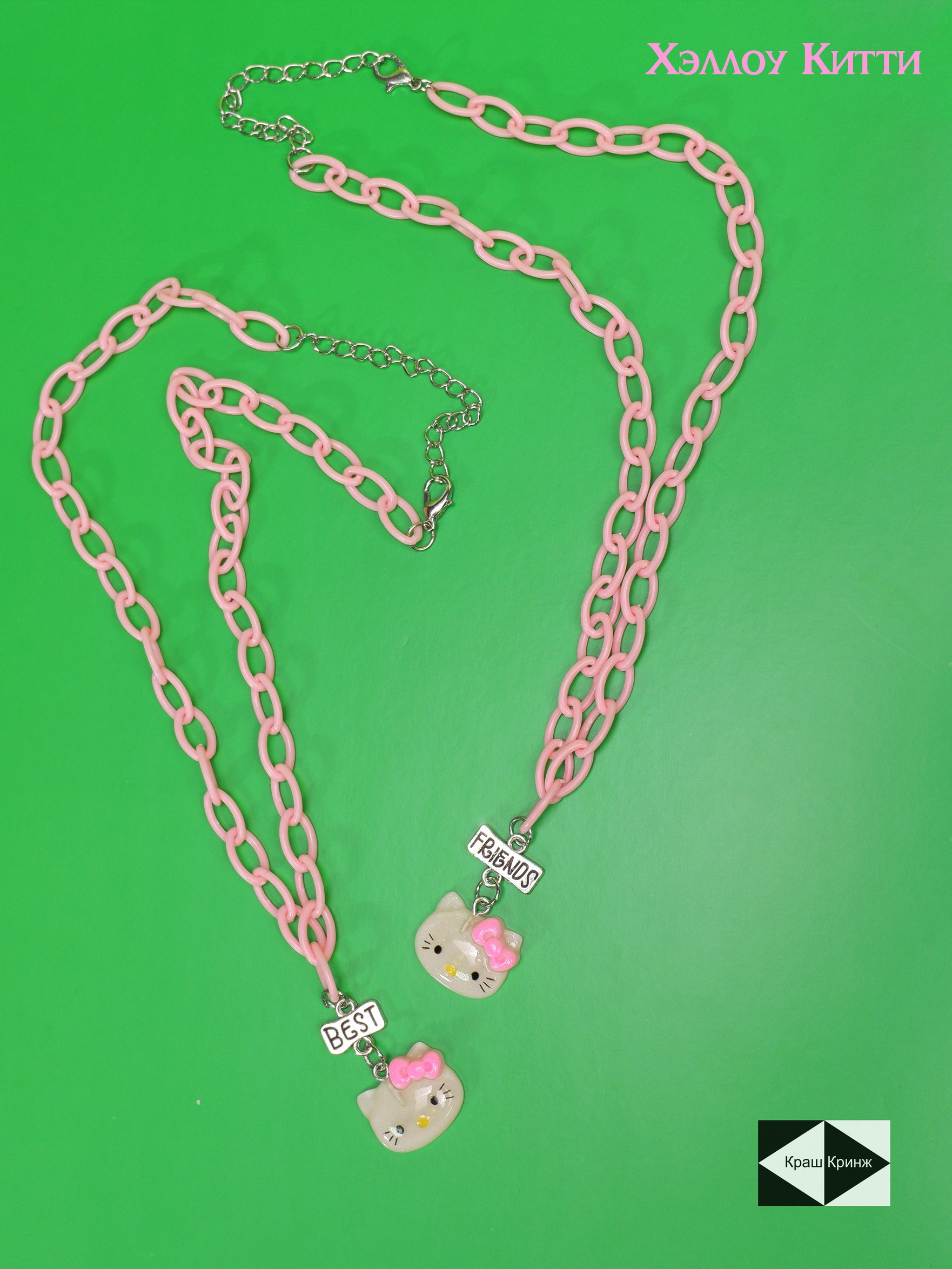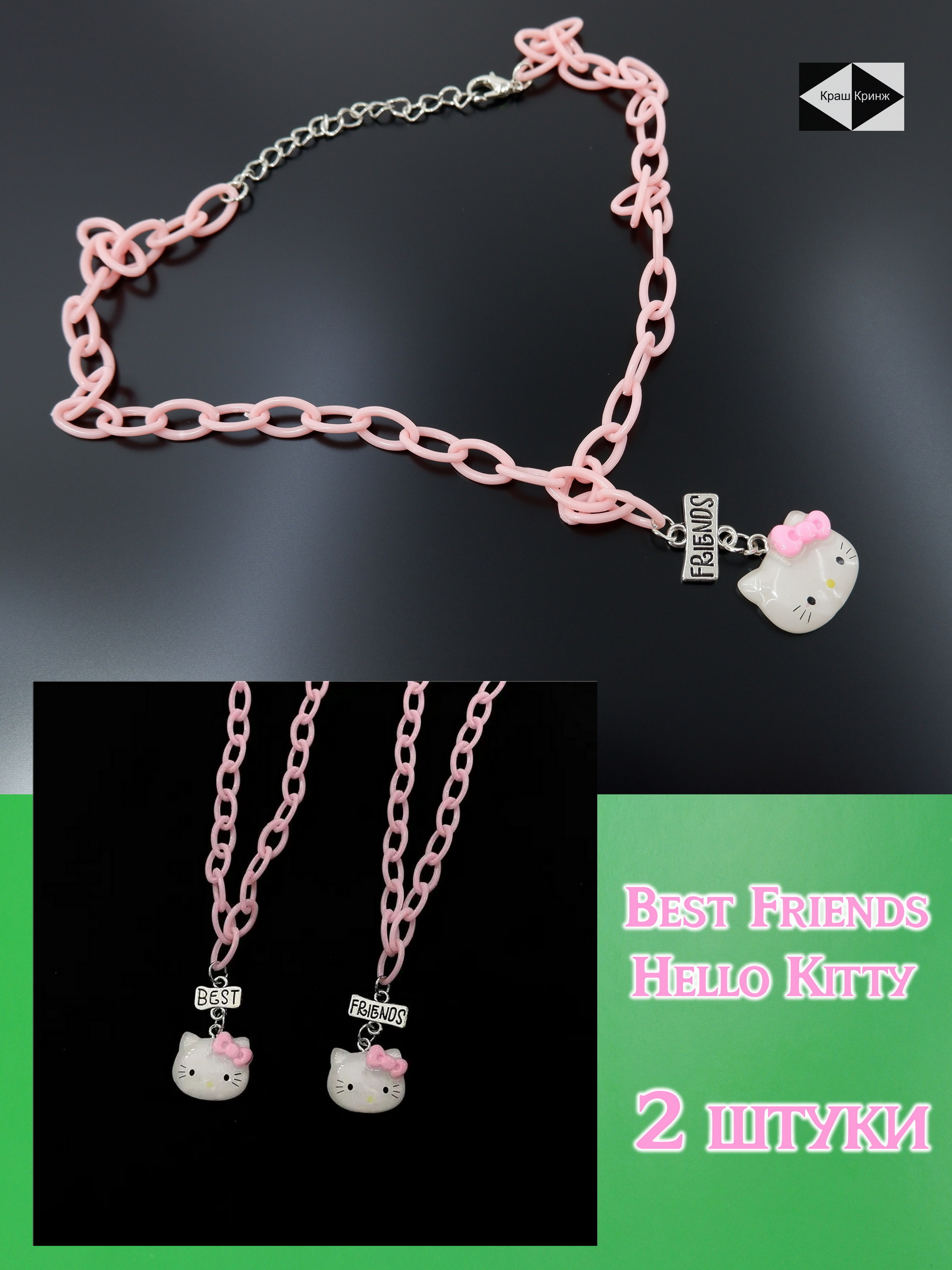 Hello Kitty; Кулоны Неразлучники Best Friends; подарок девочке Хэллоу Китти; кулоны на двоих; подвеска хелло кити; парный кулон; Хэлло Китти; цепочка Kitty; для лучших друзей; подарок девочке 7 8 9 лет; Hello Kitty В подарочной упаковке;