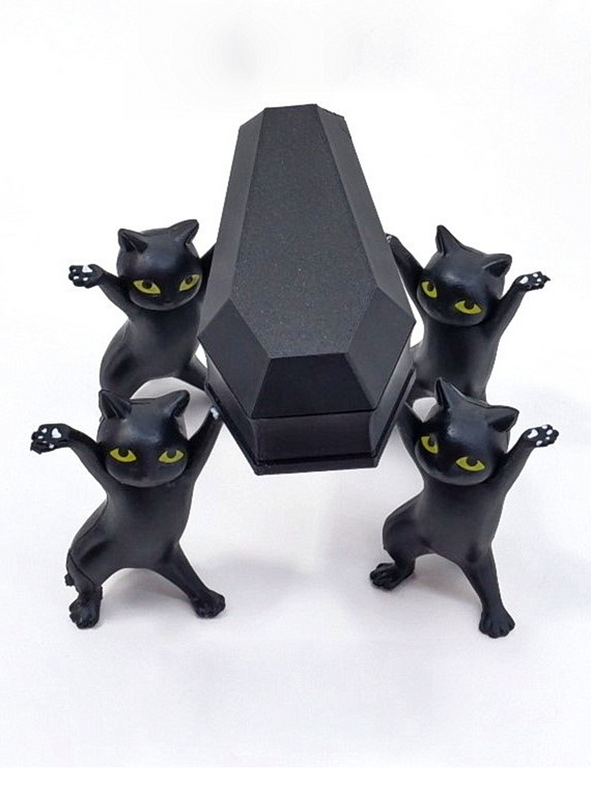 Танцующие носильщики гробов — Оригинальная коробочка с крышкой в виде гроба, который на себе несут четыре милых котика. Отличное украшение стола или полки. Необычный подарок!