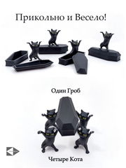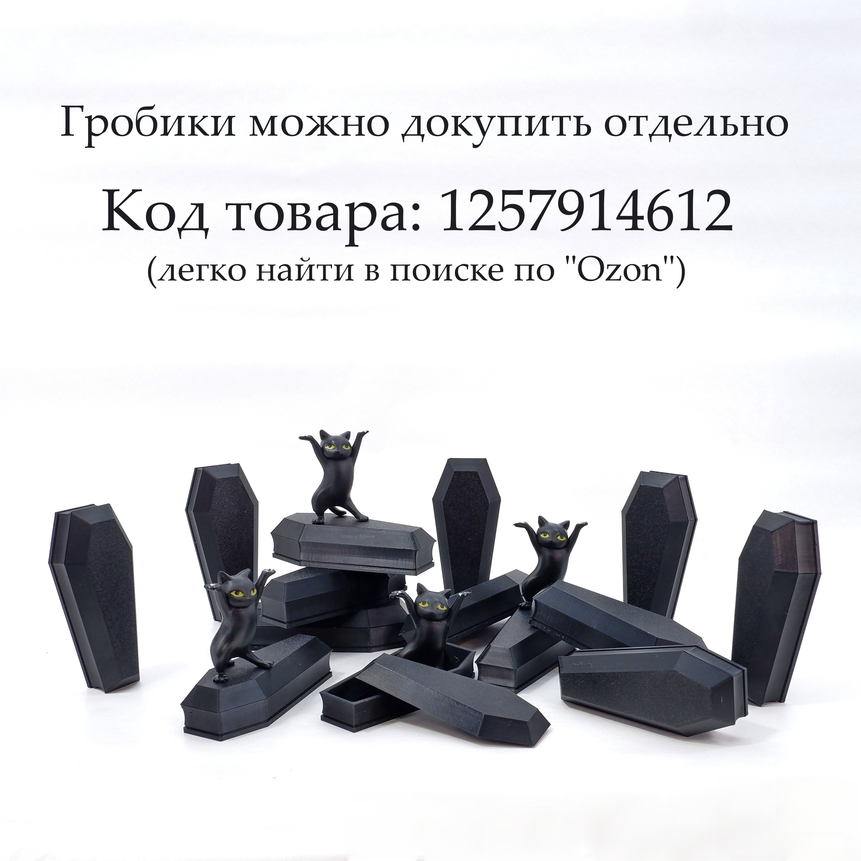 Котики выполнены из ПВХ, качественно покрашены. В комплекте котики несущие гроб Чёрного цвета. Котов можно использовать как Держатель для наушников, ручки, и всего разного другого..