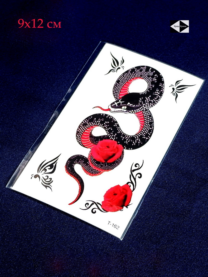 1. Временная тату-наклейка Год Змеи 2025 — 1 лист 10х15см. Размер тату 7.5x12 см.