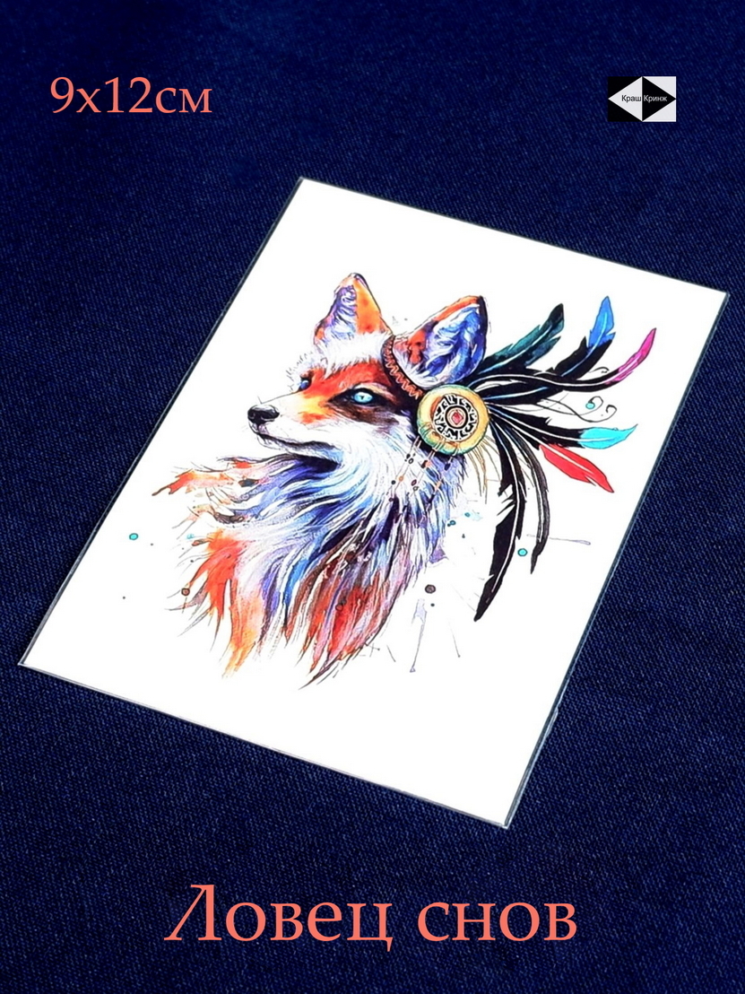 2. Временная тату-наклейка Волк Ловец снов — 1 лист 10х15см. Размер тату 9x12 см.