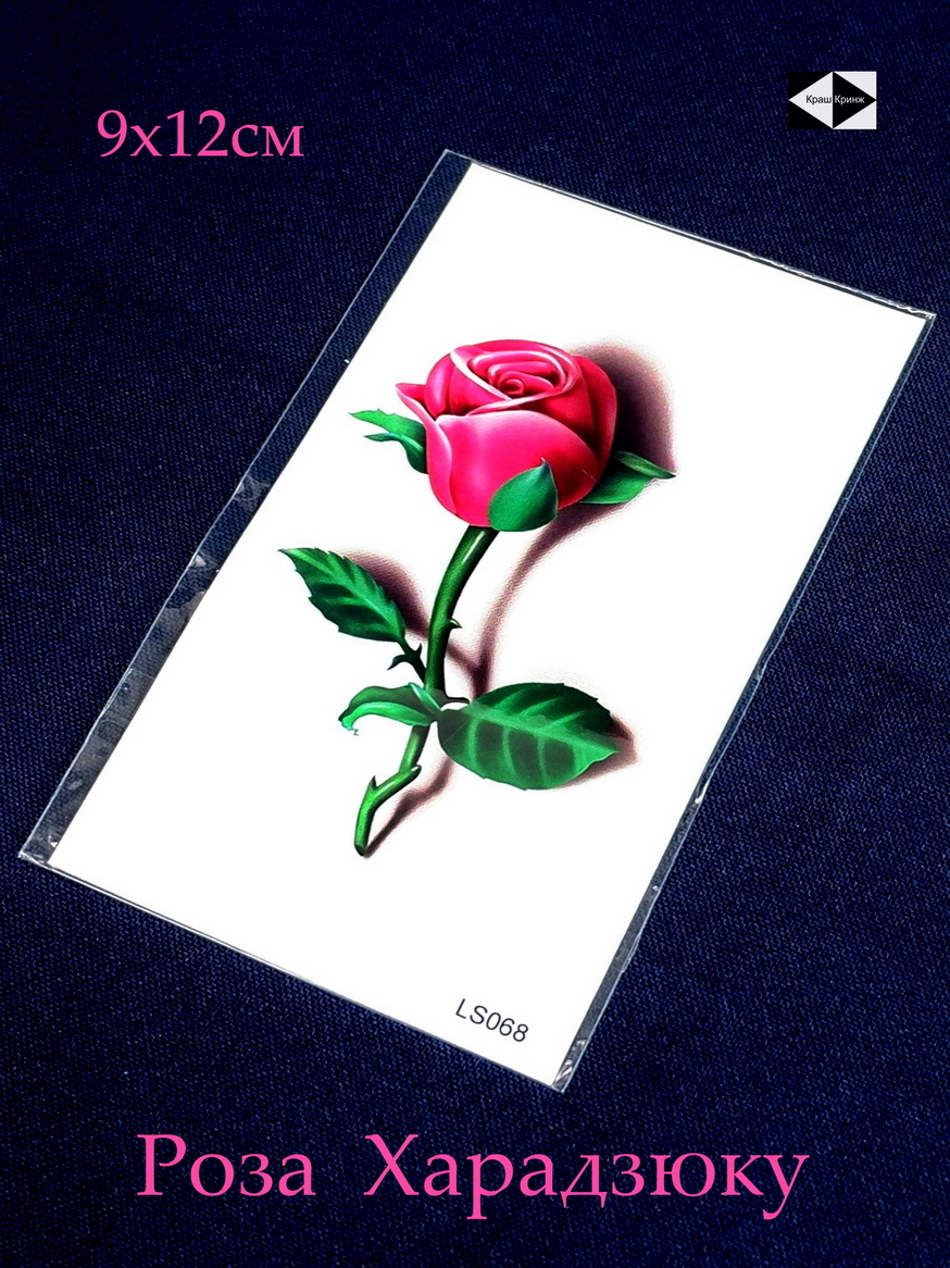 3. Временная тату-наклейка 3D Роза Харадзюку — 1 лист 10.5х6cm. Размер тату 9x12см.