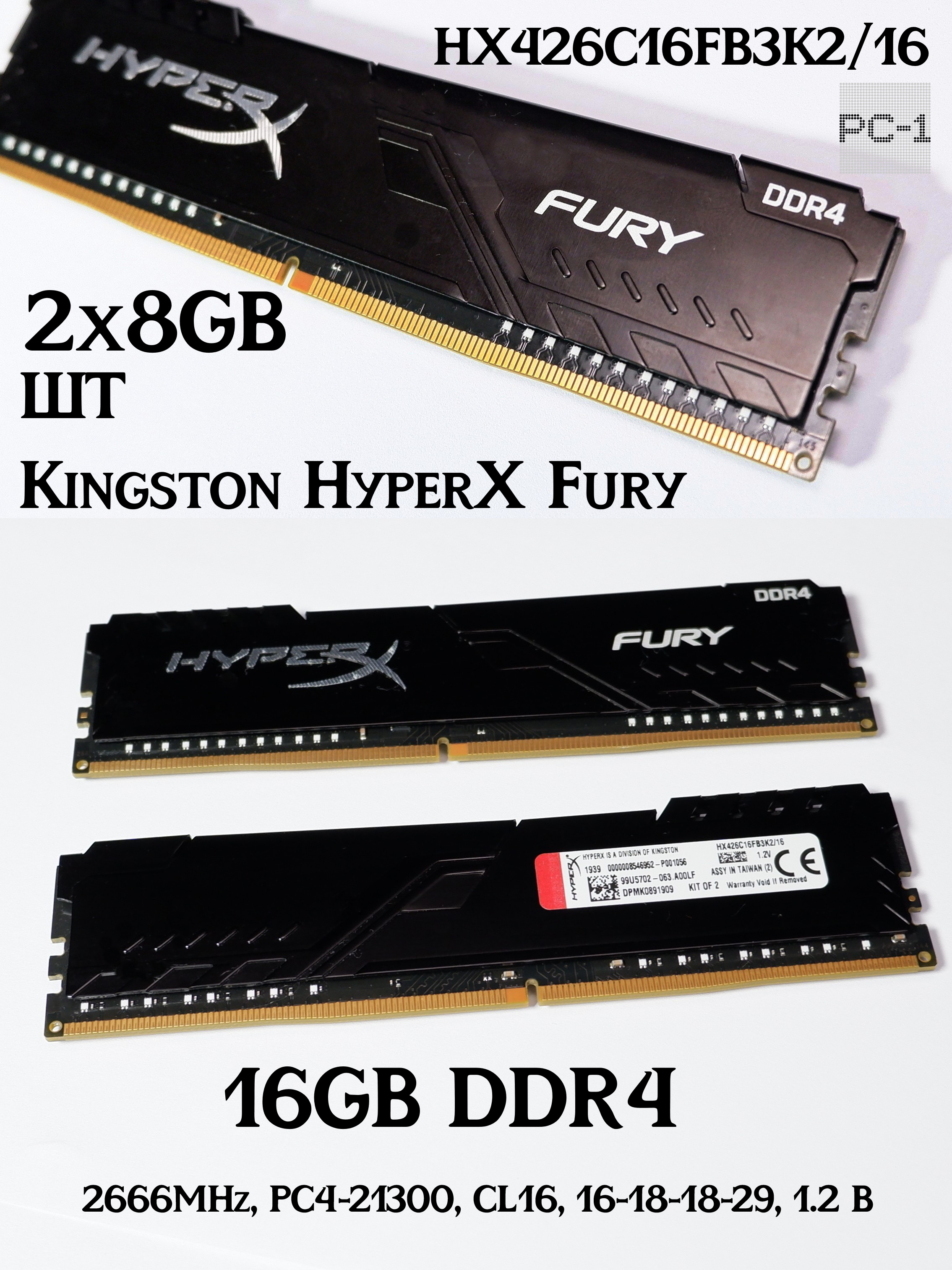Игровая Оперативная память DDR4 16GB KIT 2x8GB Kingston HyperX Fury HX426C16FB3K2/16