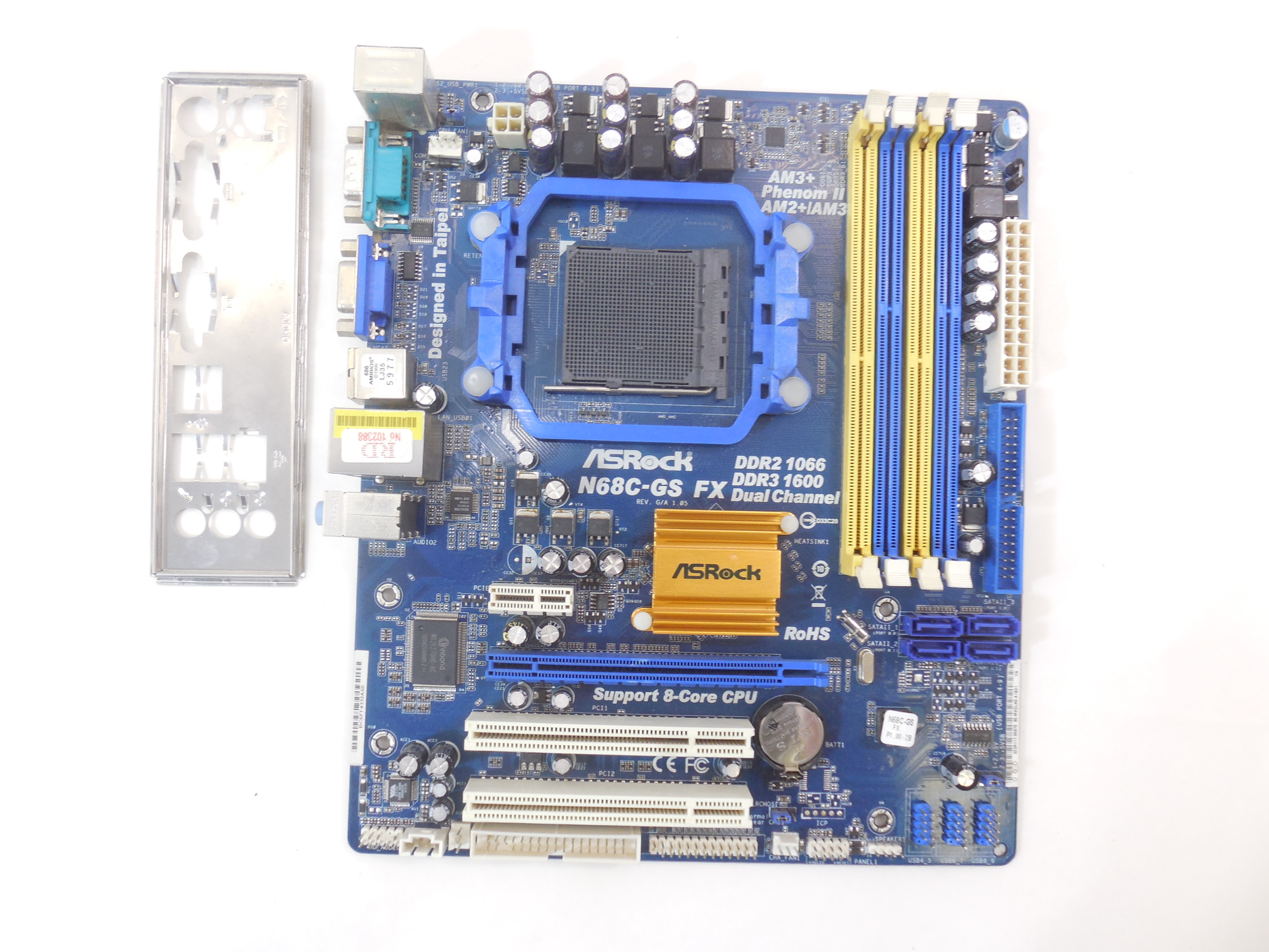 Материнская плата ASRock N68C-GS FX, Socket AM2/AM2+, AM3/AM3+, чипсет NVIDIA GeForce 7025/nForce 630a, 2xDDR2/2xDDR3, PCI-E x16, PCI-E x1, 2xPCI, 4xSATA, 24+4pin, VGA, COM, PS/2, 4xUSB, LAN, Audio, mATX, заглушка