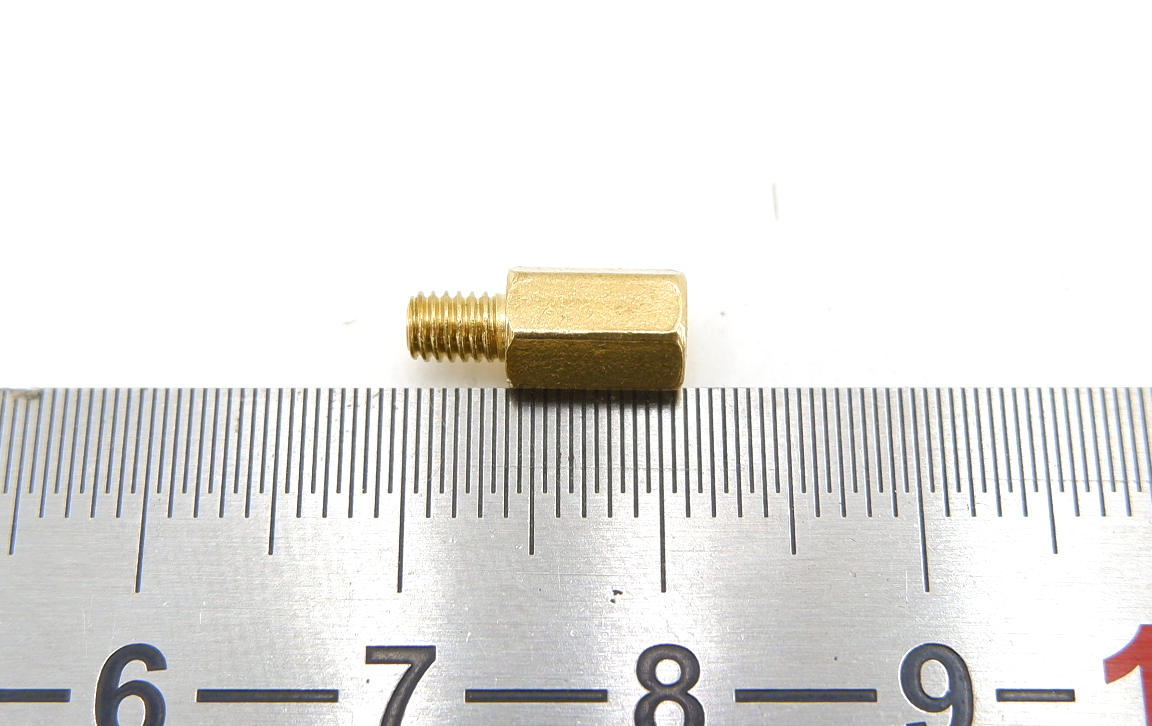 общая длина 11мм, длина винтовой резьбы M3 4мм, высота шестигранной головки 7мм, внутренняя разъема M3, материал латунь