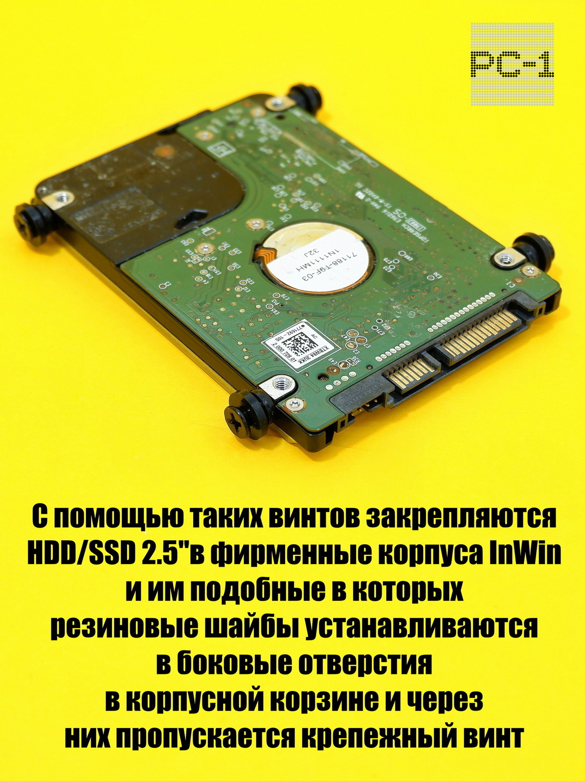1. 6 штук InWin Амортизируют жесткий диска, резиновые кольце уменьшают вибрацию жесткого диска 3,5". С помощью таких винтов так же можно закреплять HDD в фирменные корпуса InWin и им подобные в которых резиновые шайбы устанавливаются в боковые отверстия в корпусной корзине и через них пропускается крепежный винт
