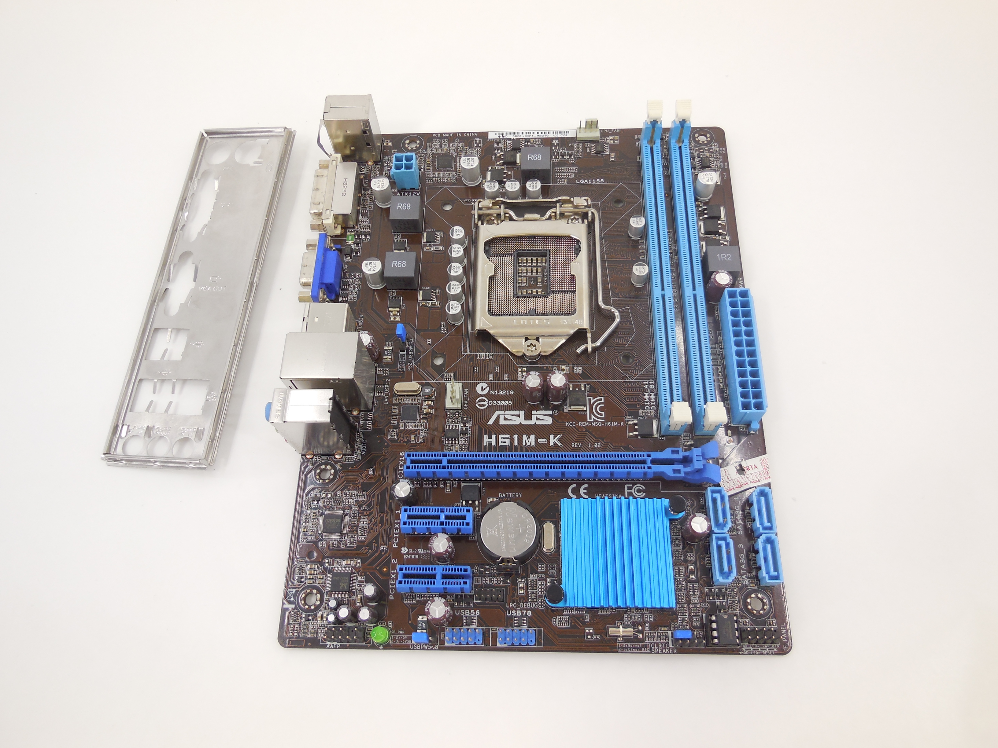 Материнская плата ASUS H61M-K, Socket LGA 1155, чипсет Intel H61, 2xDDR3, PCI-E x16, 2xPCI-E x1, 4xSATA, 24+4pin, VGA, DVI, PS/2, 4xUSB, LAN, Audio, mATX, Заглушка