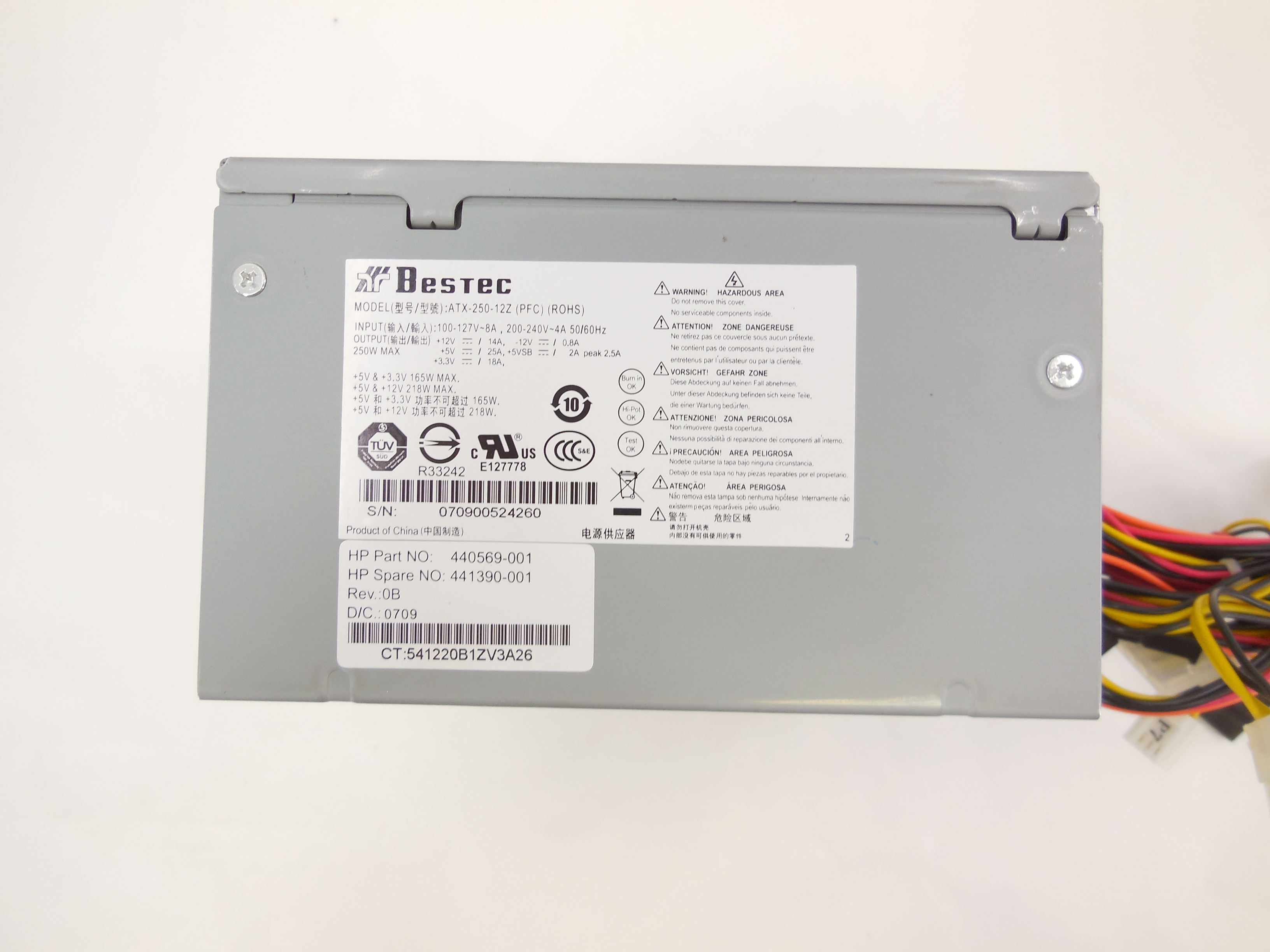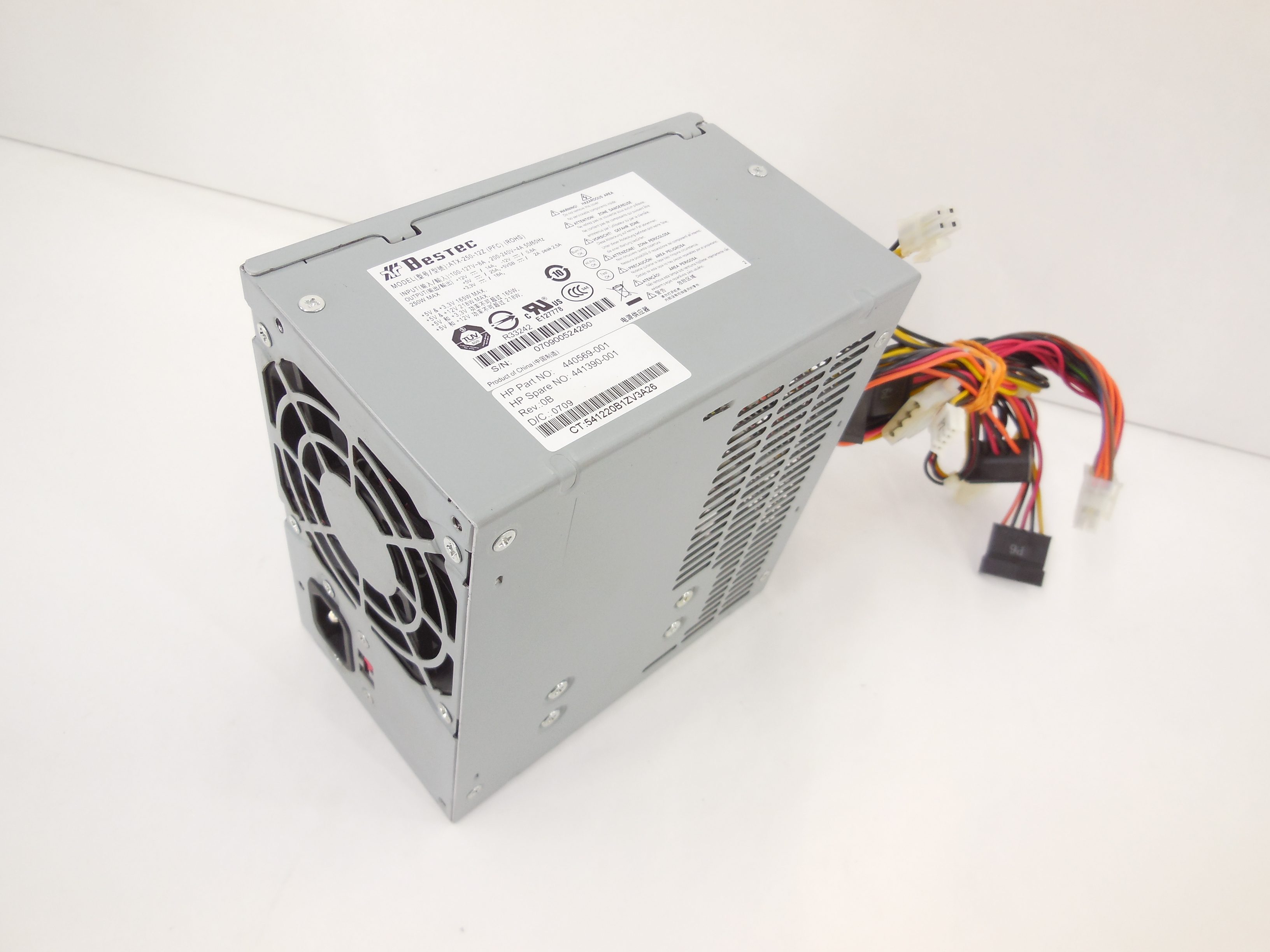 Блок питания Bestec ATX-250-12Z 250W, HP P/N: 440569-001, мощность 250 Вт, стандарт ATX 12V v.2.2, система охлаждения 1 вентилятор 80 мм, питание материнской платы 24-pin, процессора 4-pin, HDD и прочее 4xSATA, 2xMolex, 1xFDD, защита от перенапряжения, защита от перегрузки, защита от короткого замыкания, размеры (ВxШxГ) 86x150x140 мм