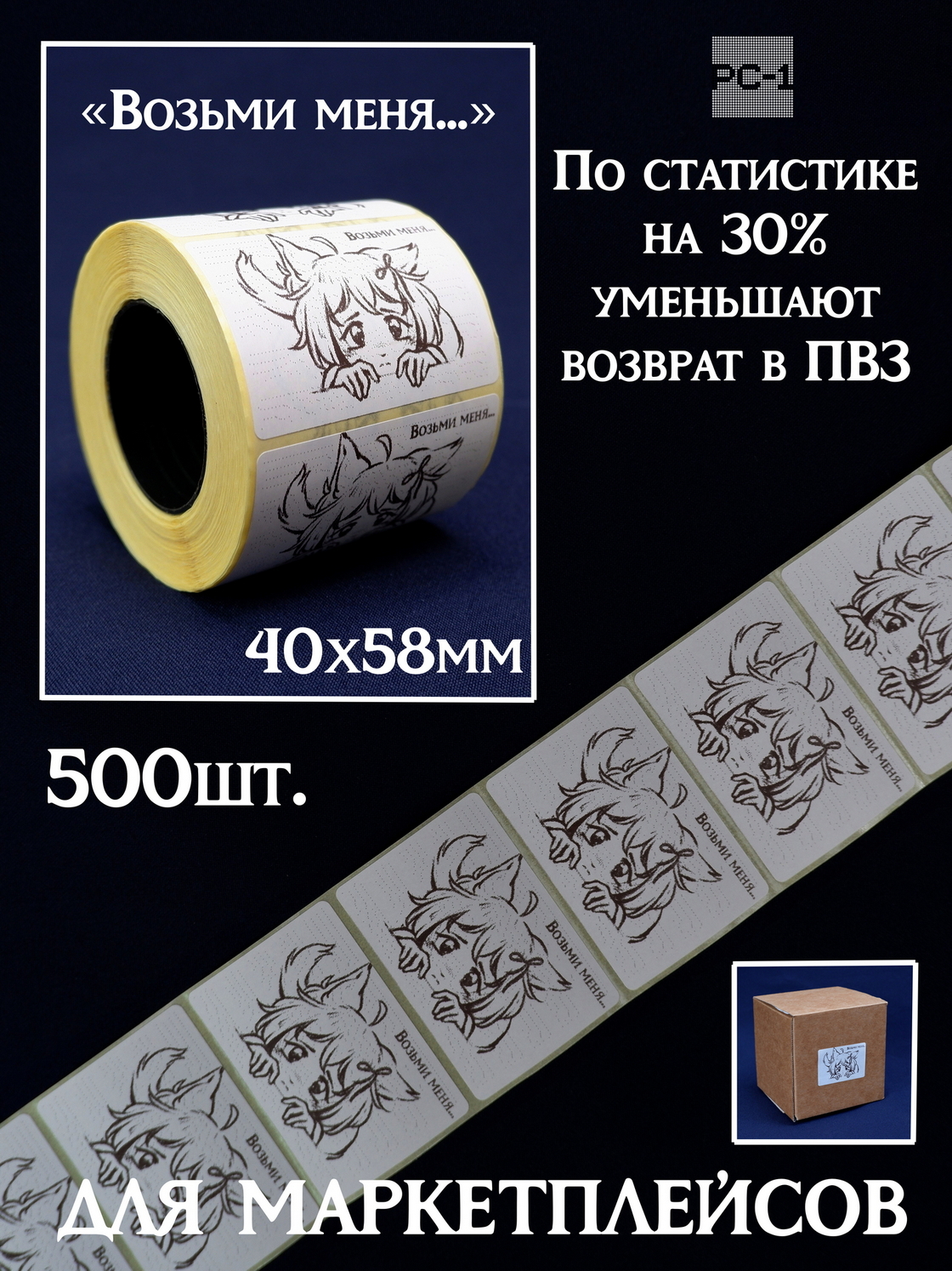 500шт. 40x58mm Наклейки «Возьми меня...» на товар для маркетплейсов. Самоклеящиеся стикеры уменьшают возвраты продавцу в ПВЗ на 30%, даря положительны